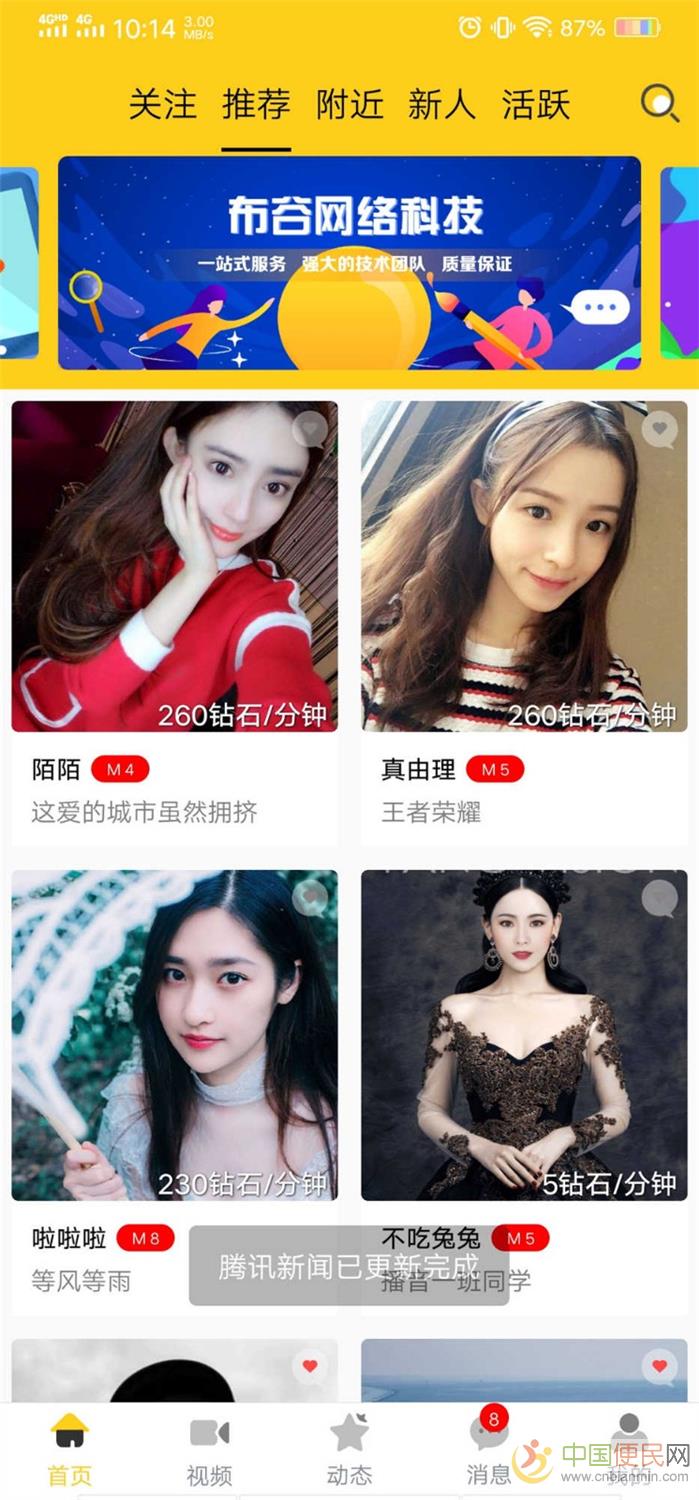 带小视频功能、动态朋友圈功能,可设置付费视频